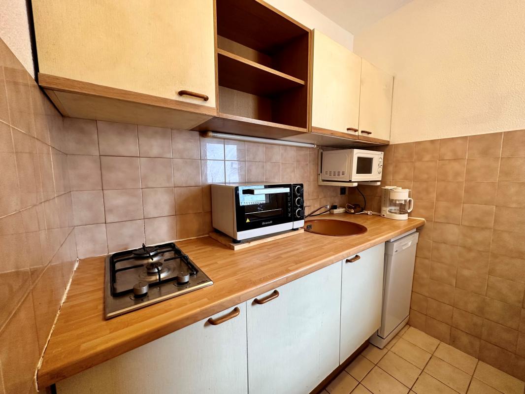 L’appartement dispose d’une pièce de vie donnant accès au balcon, d’une cuisine équipée, d’une salle de bains et de WC.