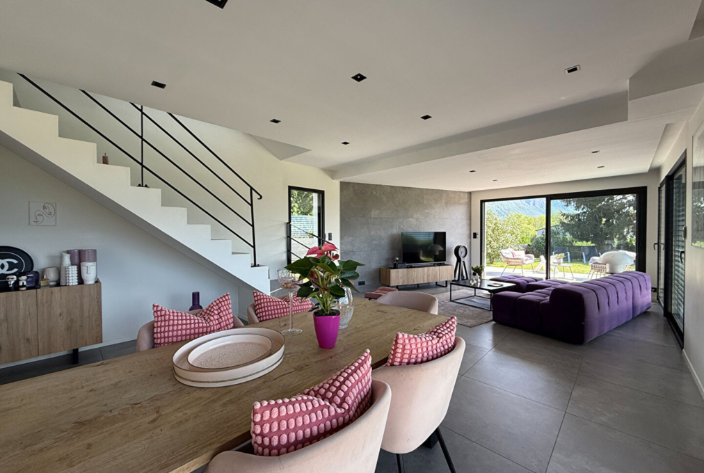 Située au sud d’Aix-les-Bains, cette villa contemporaine de 125m² offre un cadre de vie privilégié, alliant confort moderne et environnement paisible.