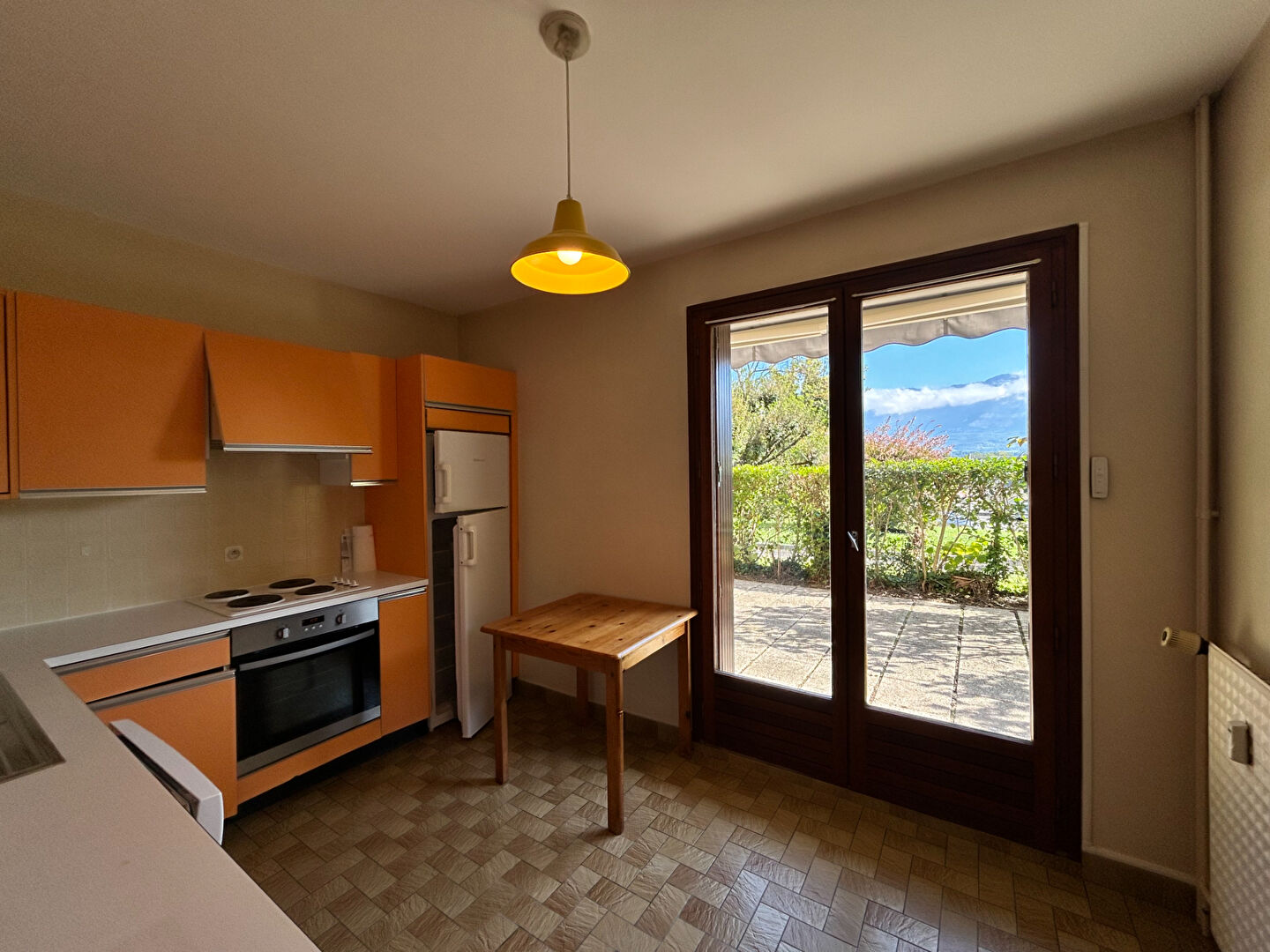Située à 2 pas du centre du Bourget du Lac, proche de tous les commerces, appartement de type 3 en rez de jardin comprenant :