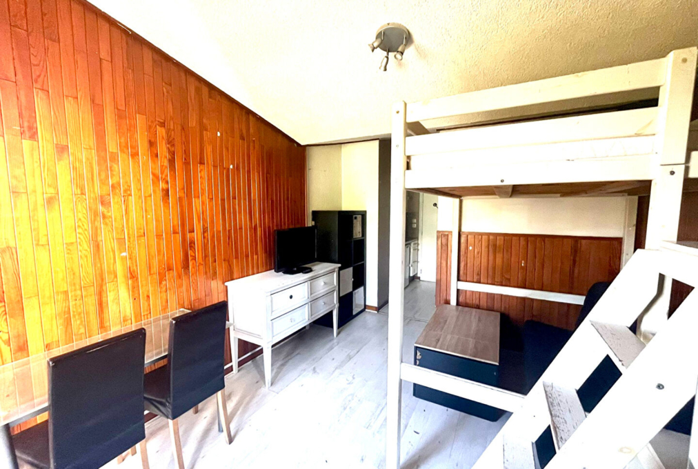 Appartement de 19m² situé dans les étages élevés, offrant une superbe vue dégagée sur le lac et le golf. Idéal pour un projet de rénovation ou un pied-à-terre à la montagne.