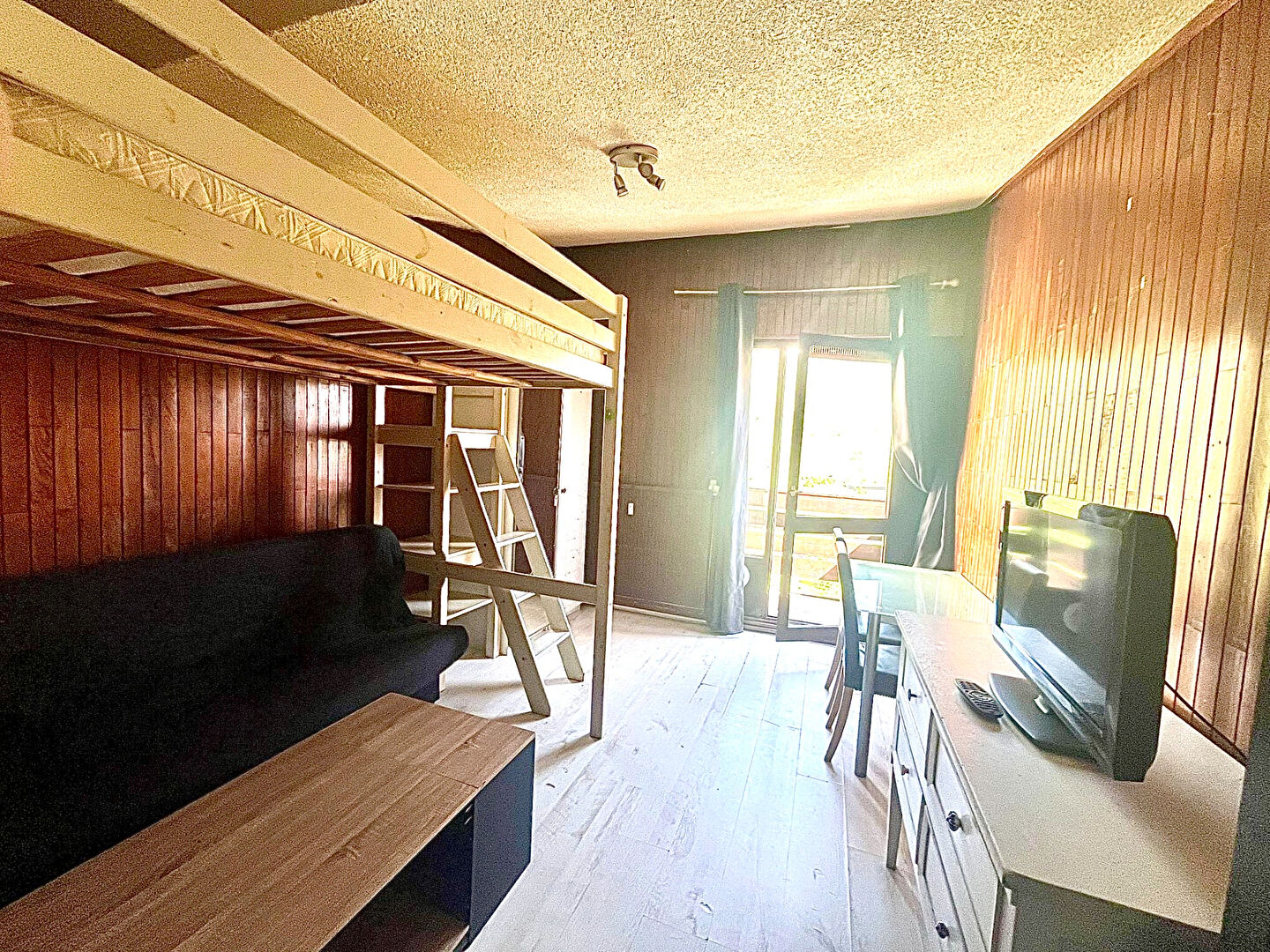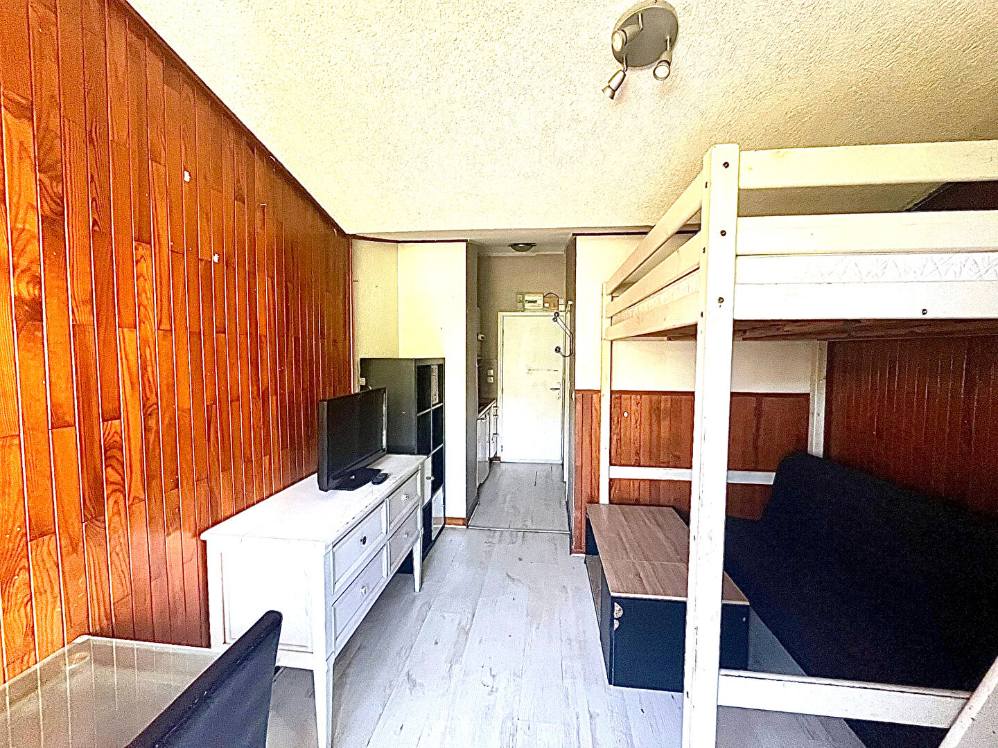 Appartement de 19m² situé dans les étages élevés, offrant une superbe vue dégagée sur le lac et le golf. Idéal pour un projet de rénovation ou un pied-à-terre à la montagne.